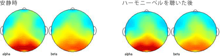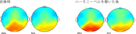 【考察3:2ヶ月間毎日ハーモニーベルCDを聴いた後、実験時にハーモニーベルCDを聴く前の安静時と聴いた後の脳波】